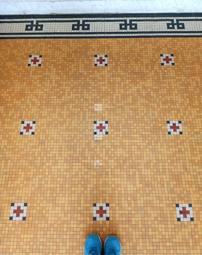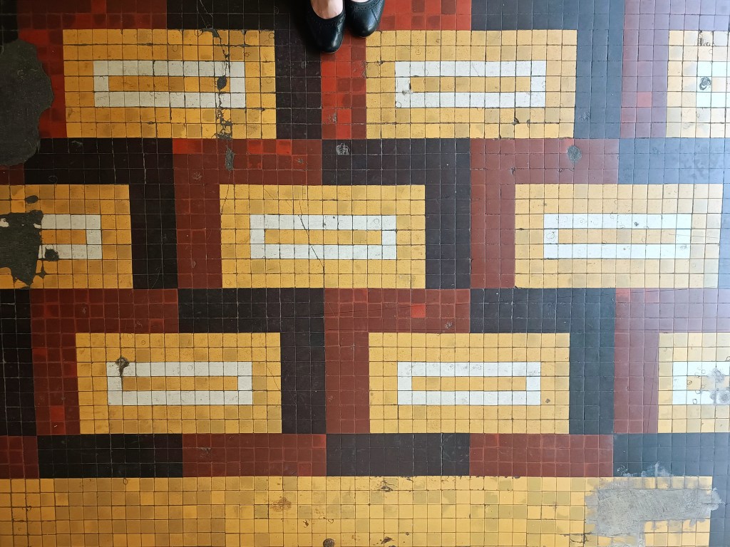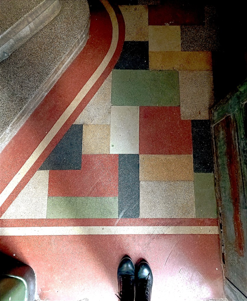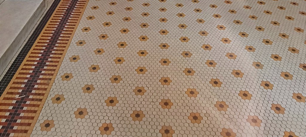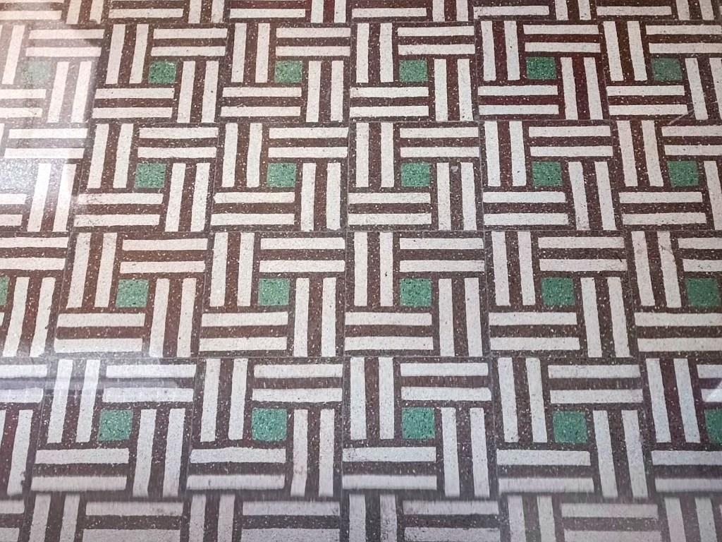 Acoperite cu marmură sau plăci ceramice (o parte dintre ele provenite de la compania cehoslovacă Rako), pardoselile imobilelor Art Deco reprezintă un element decorativ esențial, care reflectă și concentrează estetica generală a clădirii. Uneori, modelele transcend epocile, fiind preluate din perioada antebelică – în special cele florale.